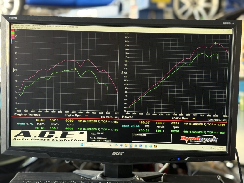 パワー210.31PS/8236rpm トルク20.18kgm/6998rpm