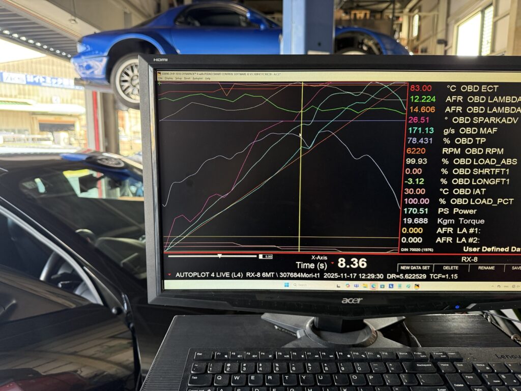 まずはノーマル状態で上写真の様にOBDからノーマルの状態で廻してデータ取りから行いました。