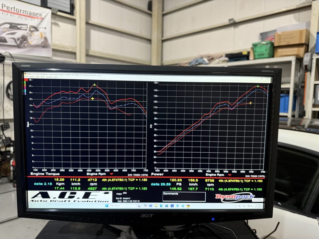 今までこのL15Bエンジンでインマニを交換しない場合のセッティングだと、パワー約7馬力前後アップが精一杯でしたがインマニとスロットルを交換することにより30馬力も変わりました。