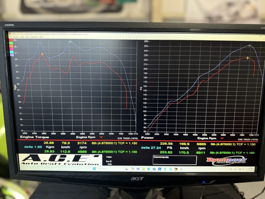 その他点検後まずはノーマルECU状態で回していき、平均パワー&トルク 226馬力 26.8kgmくらいでした。