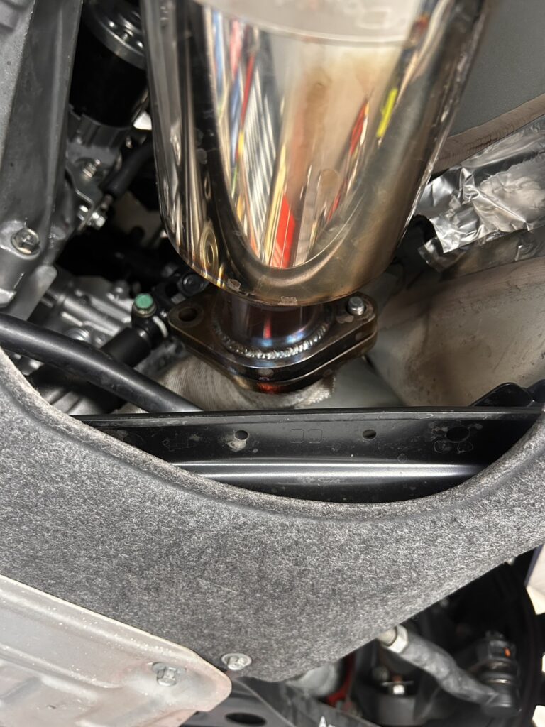 セッティング前の点検で分かったのが、ダウンパイプ後ろのボルトが左側脱落で右側はナットが無い状態でした。