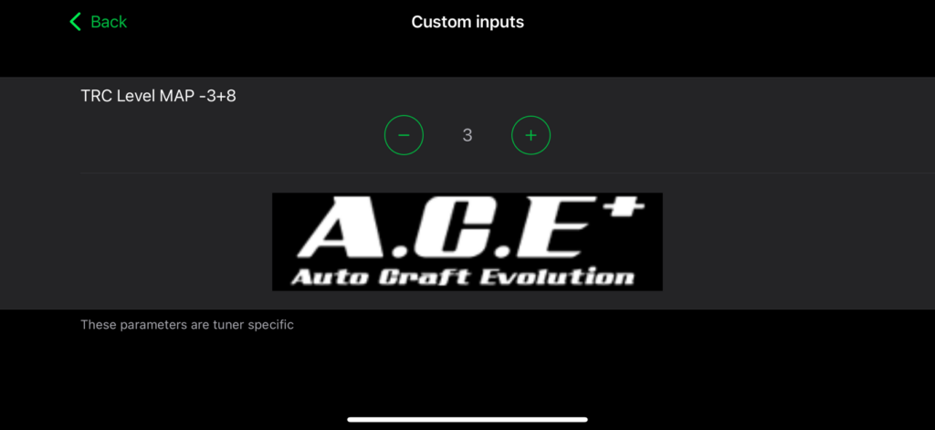 0を基準にしてプラス側8段階 マイナス側3段階として例えばヘビーウエットでは8で使用、ハーフウエットでは4で使用、ドライでコーナー立ち上がりで高く修正が多い場合は1で使用等、路面状況やタイヤ状態で変更できるのですごく便利です。またトラコンもマップ設定でオンオフも可能となっております。